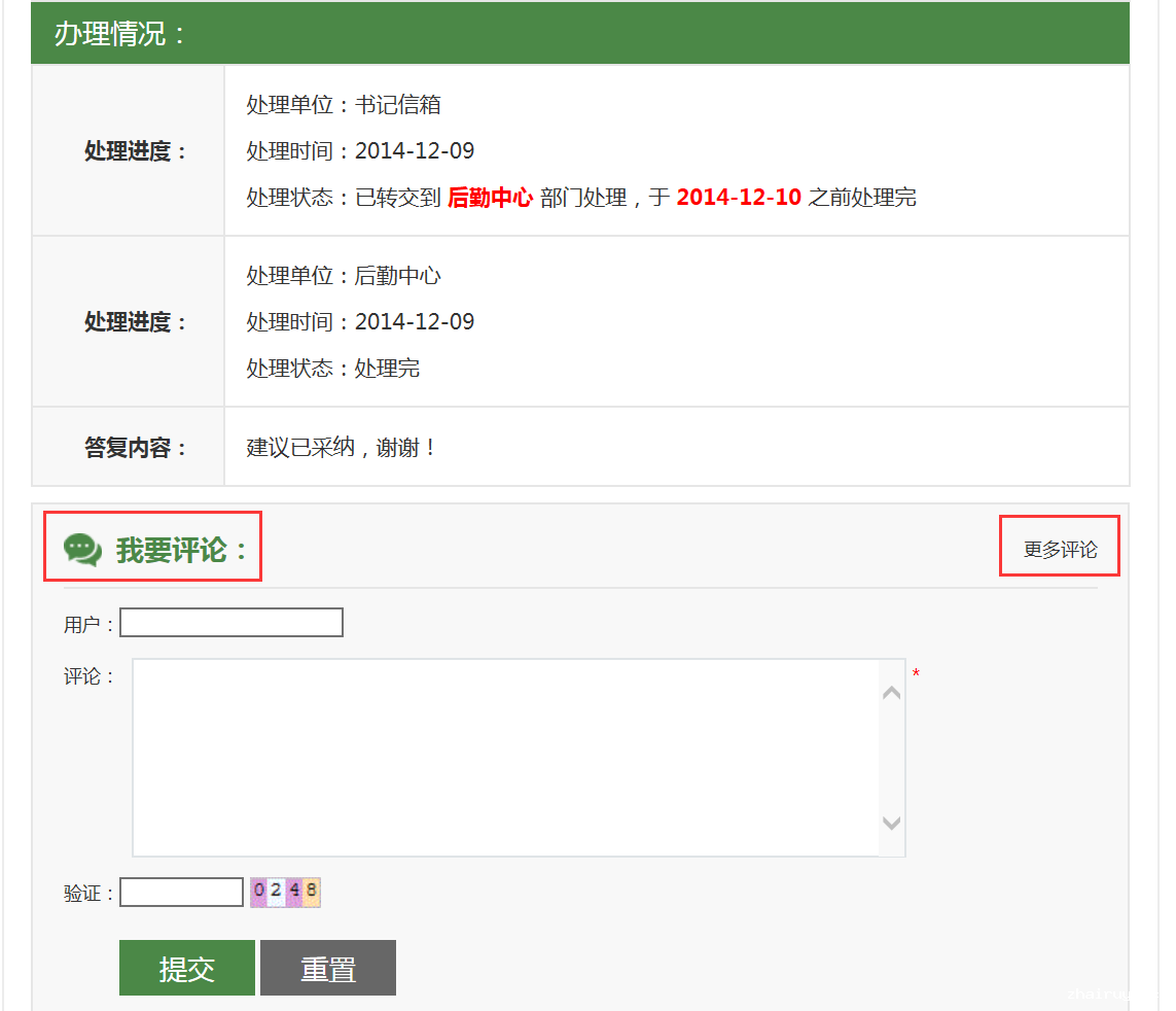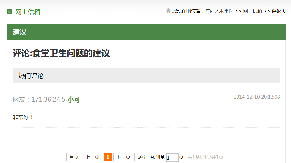 浏览用户通过信件(已公开)查看详细页面可以对信件进行评论,并可以查看其它评论。如下图所示:
