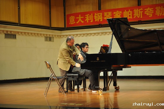 帕斯夸勒·亚诺毕业于英国皇家音乐学院,曾获多项重要钢琴大赛奖,与诸多交响乐团合作,并培养出国际和国内比赛中获奖的众多学生。此次讲学主要面向音乐学院钢琴系师生,以一对一上课的形式进行,由同学们上台演奏曲目,弹奏结束后,帕斯夸勒.亚诺教授亲自点评,指出该同学弹奏曲目的不足之处,并对其现场示范。同时,帕斯夸勒.亚诺教授还就曲目的感情色彩、踩踏板的巧妙运用、手指如何灵活驾驭曲目等问题作了详细讲解。